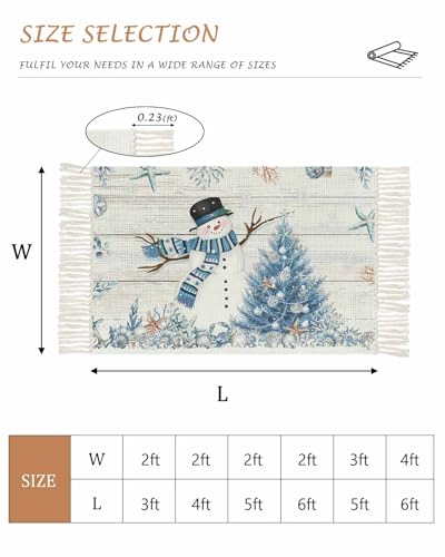 Christmas Coastal Hallway Runner Rug 2x5ft,Blue Snowman Coral Starfish Snowflake Washable Woven Living Room Bedroom Kitchen Bathroom Carpet with Tassels,Non-Shedding Indoor Throw Door Mat for Entryway
