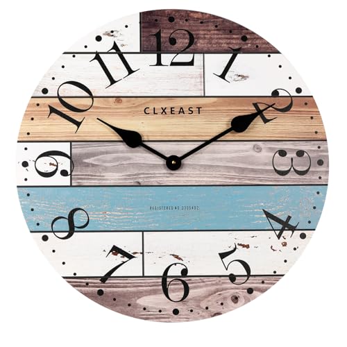 - [Quality Craftmanship ]- UV printed blue, white, natural and brown color on carved shiplap style woodgrain mdf board. Its beachy vibes and weathered woodgrain finish bring the seaside to your home, making it an essential beach clock for any coastal wall clock enthusiast.1 keyhole on the back for easy installation,It requires 1 AA battery for operation, not included
