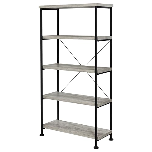 Coaster Home Furnishings Analiese Rustic Industrial 4-Tier Bookcase Etagere Bookshelf Office Storage Book Shelf Engineered Eco-Friendly Wood Look Laminate Sturdy Black Steel Base Grey Driftwood 801546