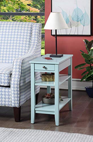 Convenience Concepts American Heritage Chairside End Table with Drawer 23.5" – Classic Living Room Table with Storage Shelf, Bedroom Nightstand, Sea Foam Blue