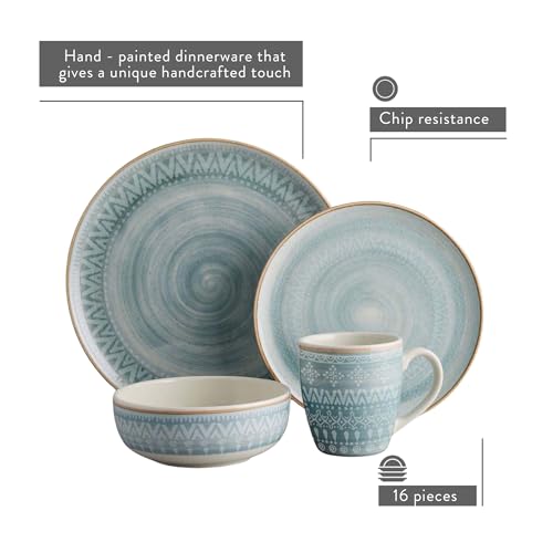 Corona Dinnerware Set 16– piece, Plates Bowls and Mugs Set, Ceramic Sets for 4, Microwave and Dishwasher Safe, Congo Etnic Design