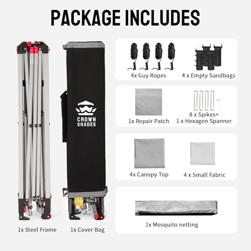 - [OUR PROMISE]: Experience our amazing customer service! We are here to support your canopy. We are available around the clock to help correct any problems or questions you might have with our Crown Shades products. Please note that our products are designed for daily use to protect from the sun and light rain. Please fully anchor your canopy to the ground to avoid damage.