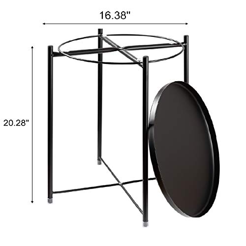 danpinera End Table, Metal Side Table Small Outdoor Table Round Side Table with Removable Tray for Living Room Bedroom Balcony Patio and Office, Gifts Idea for Monthers Day(Black)