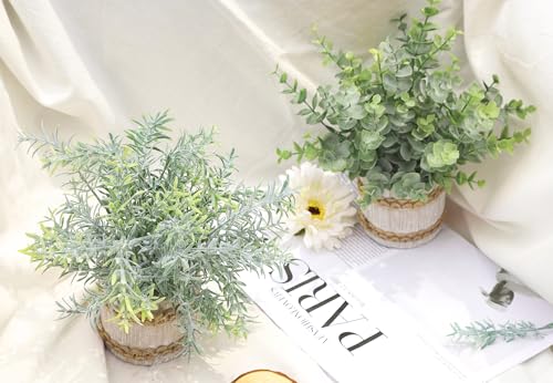 Der Rose 4 Pack Farmhouse Fake Plants Artificial Plants for Home Kitchen Office Desk Rustic Table Boho Aesthetic Room Decor Indoor