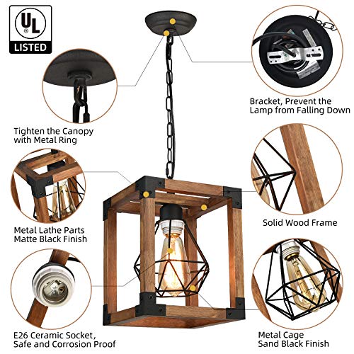 - [Quality Material] Crafted from Natural Oak, this Durable Farmhouse Pendant Lights Adds a Rustic Charm to your Home, Perfect for General Lighting