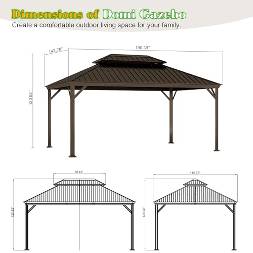 - Ample Space for Gatherings: The spacious design of the Domi 12’x16’ Hardtop Gazebo comfortably accommodates 10 to 15 individuals, making it perfect for family gatherings, barbecues, or simply relaxing outdoors. Create unforgettable moments in your backyard with this stylish and functional structure.