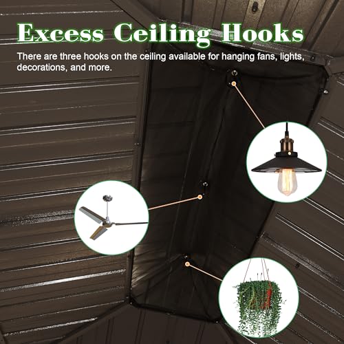 - Versatile Hook System: This metal gazebo features 3 hooks on the roof, allowing you to hang decorative items like lights or fans. This feature adds ambiance to your gatherings, transforming your outdoor area into an inviting retreat.