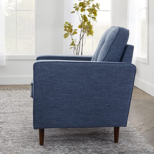 Edenbrook Lynnwood Upholstered Accent Chair – Living Room Furniture – Office – Bedroom – Mid-Century Modern Design – Armchair – Buttonless Tufting – Simple Assembly – Solid Frame – Navy