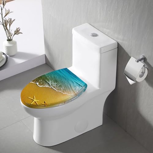 Elongated Toilet Seat sand wave Resin Toilet Seat with Quietly Close Quick Release Hinges Decorative Toilet Seat with Cover Easy to Clean and Install Beach Theme Decor Nautical Decor