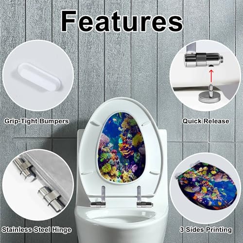 Elongated Toilet Seat Tropical Fish Resin Toilet Seat with Quietly Close Quick Release Hinges Decorative Toilet Seat with Cover Easy to Clean and Install