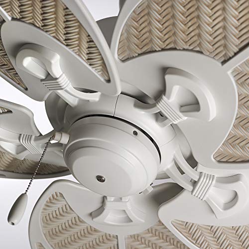 kathy ireland HOME Batalie Breeze Outdoor Ceiling Fan, 52 Inch | Large Metal Fixture with Palm Leaf Blades, Quiet Motor, and Pull Chain | Tropical Style for Outside and Indoor Home Decor, White