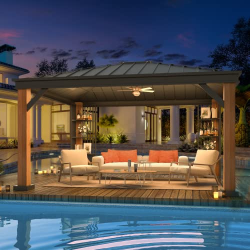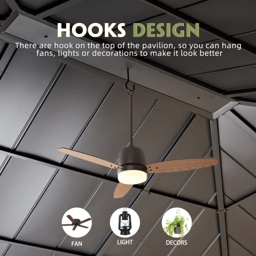 - GALVANIZED STEEL ROOF: Fade-resistant and rust-resistant galvanized steel top, blocks bright light and harmful UV rays, making this hardtop gazebo robust enough to withstand heavy snow and wind. The double-top design promotes ventilation, cooling, and reduces wind speed, providing unmatched stability for your outdoor activities.