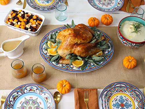 Euro Ceramica Zanzibar Collection 16 Piece Dinnerware Set Kitchen and Dining, Service for 4, Spanish Floral Design, Multicolor, Blue and Yellow
