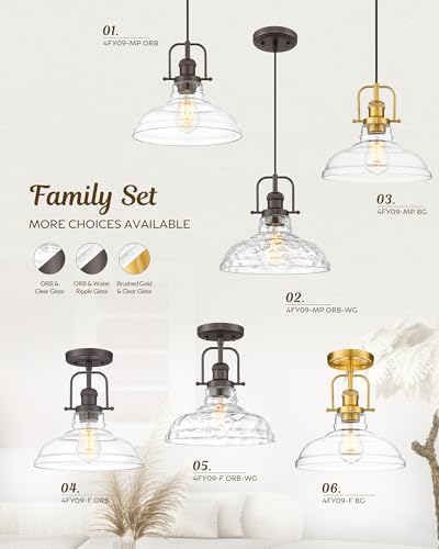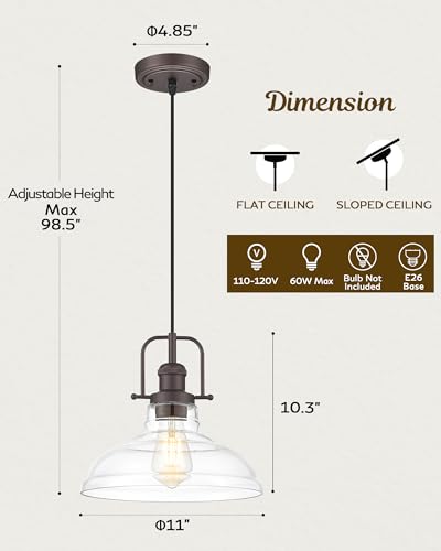 FEMILA Pendant Lights for Kitchen Island, 11" Farmhouse Hanging Light Fixture with Adjustable Height, Clear Glass Shade, Oil Rubbed Bronze, Vintage Pendant Lighting, 4FY09-MP ORB