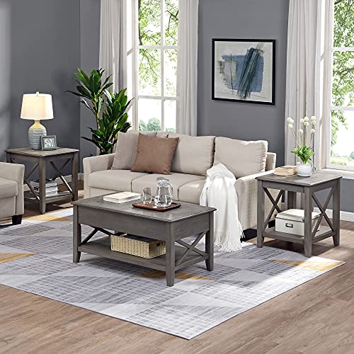 - FASHIONABLE & FUNCTIONAL – This stylish lift top coffee table features a raised lift top that provides the perfect surface to easily eat or work from your couch as well as a lower shelf and 2 small compartments for extra storage space. With its farmhouse x-shaped design, make a statement in your living room, den or any other room