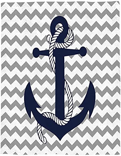 Flannel Fleece Luxury Lightweight Cozy Couch/Bed Super Soft Warm Plush Microfiber Throw Blanket,Nautical Navy Anchor with Gray and White Chevron (40 x 50 Inches)