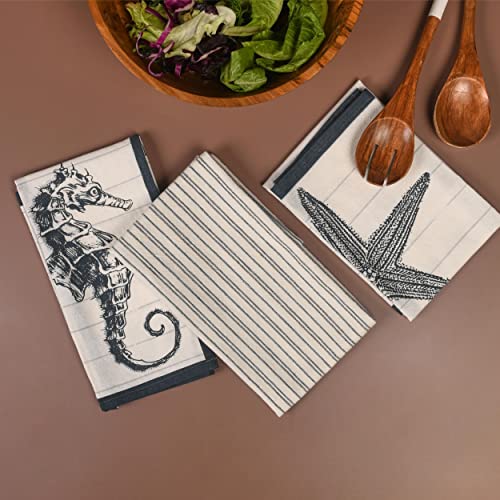 Folkulture Kitchen Towels with Hanging Loop, 18' x 28', Set of 3 Modern Tea Towels or Dish Towels for Drying Dishes, Cotton Dishcloths or Hand Towels for Home Décor, Absorbent (Midnight Blue)