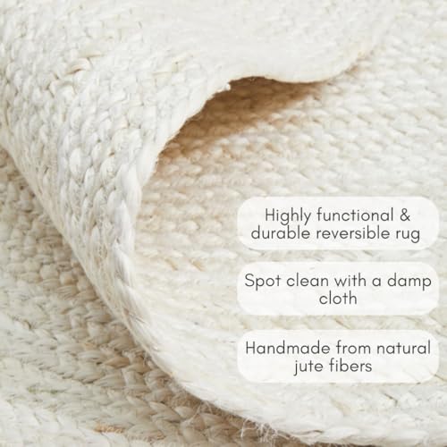FRELISH DECOR Handwoven Jute Area Rug- Off-White Round Rustic Vintage Beige Braided Reversible Rug- Eco Friendly Rug for Bedroom, Kitchen, Living Room, Farmhouse (5' Round – Off-White)