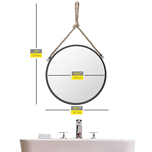 - FUIN 20" Round Metal Wall Mirror with Circle Circular Frame Decorative Hanging Rope for Bathroom Vanity Entryway