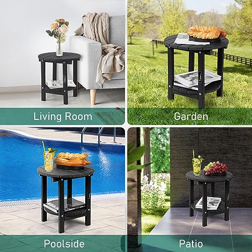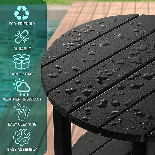 - Double Layers & Smooth Design: The 2-tier design of this outdoor side table provides more storage space for food, drinks, books and other items. The smooth edge design makes this patio table more safe especially for families with children. This patio side table is an ideal companion for Adirondack chairs, Rocking chairs and Chaise Lounge chairs.