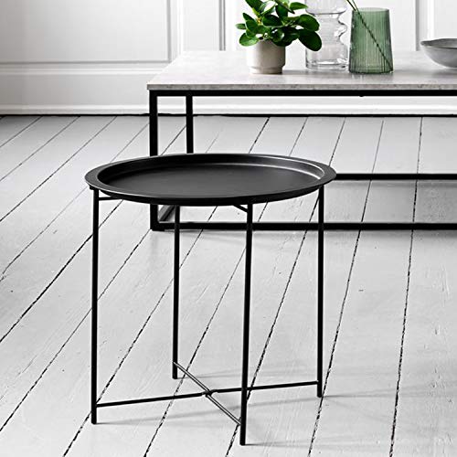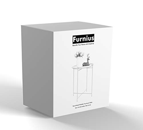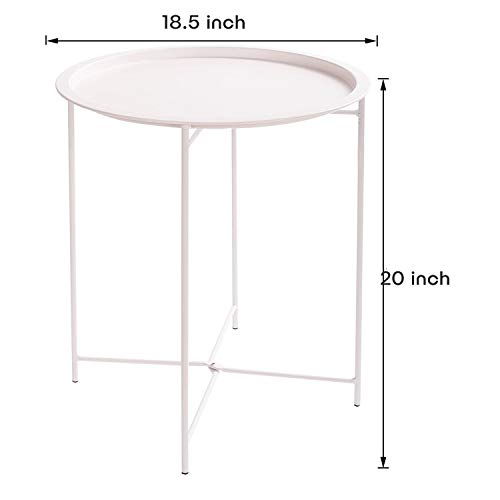 Furnius Folding Tray Metal Side Table, Sofa Table Small Round End Tables, Anti-Rust and Waterproof Outdoor or Indoor Snack Table, Accent Coffee Table,(H) 20.28" x(D) 16.38", White