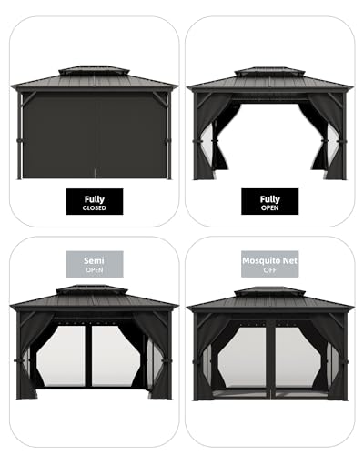GAOMON Hardtop Gazebo 12'x14' for All Weather, with Double Metal Roof, Aluminum Alloy Frame, Net, and Curtain, Permanent Building of Backyard Luxury for Patio, Deck, Backyard, Lawn, and Garden, Gray