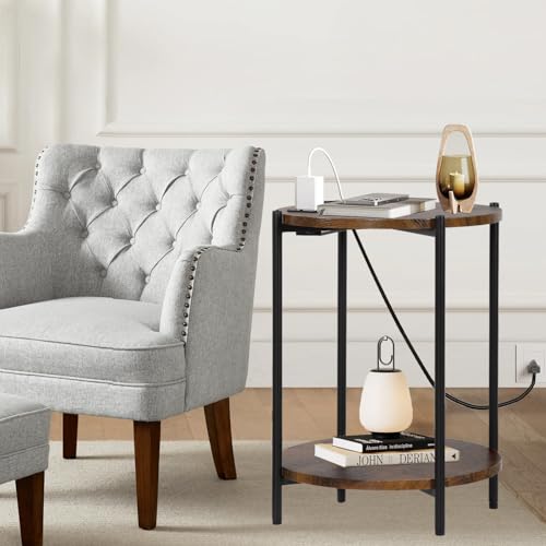 Gawicpy 2 Tier Round Side Table, Folding End Tables Coffee Table Simplistic Sofa Table Waterproof Removable Tray Table Indoor Outdoor Accent Table for Living Room Bedroom (Brown, 2pcs)