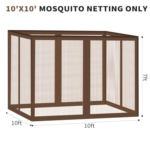 Gazebo Universal Replacement Mosquito Netting, 10' x 10' Outdoor Canopy Net Screen 4-Panel Sidewall Gazebo Curtains, with Zippers, Easy to Install, Fit for Most Gazebos 10×10 Canopy,Patio (Brown)