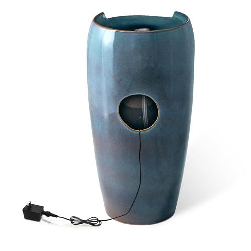 Glitzhome 29.25" H Oversized Ceramic Vase Outdoor Water Fountain Tall Patio Garden Water Fountain with LED Light and Submersible Pump Yard Art Decor, Turquoise