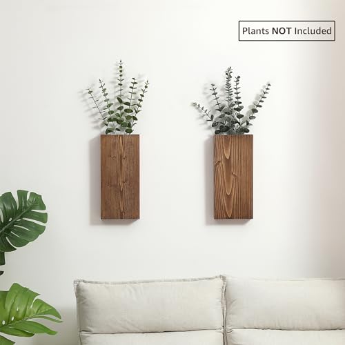 Wood Wall Planter Set of 2, Wood Wall Pocket for Greenery and Dried Flowers, Indoor Hanging Vase, Modern Farmhouse Wall Decor for Living Room Bedroom Office Eucalyptus Stems Decorations (Walnut)