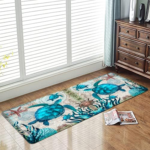 - Large Runner Rug for Bedroom Size: Our sea turtle rug coastal long floor mat is made of imported high quality soft and comfortable memory foam Microfiber fibric. Extra Long kitchen mat Size : 23.6 x70.8inch (60X180cm ). Turtle sea theme long runner rug 2×6 is the wonderful housewarming gifts. Tropical Summer Ocean Life turtle bedroom rug is lightweight and could be continually using for long time.