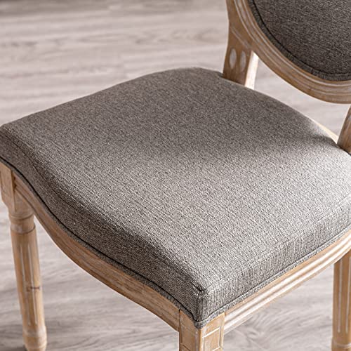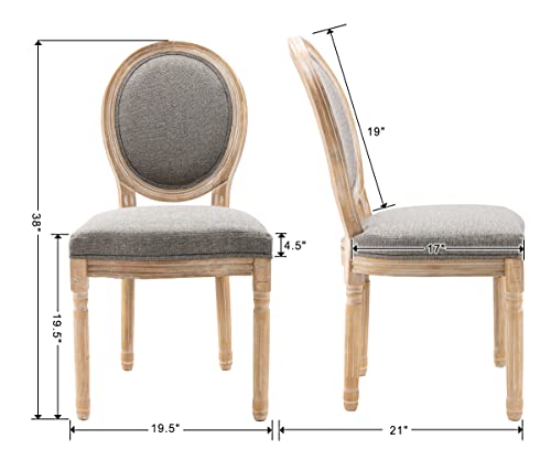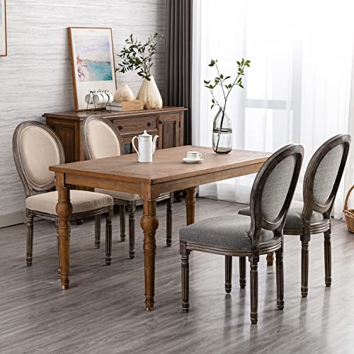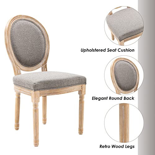 Guyou Upholstered Dining Chairs Driftwood Set of 4, Antique Dining Room Chairs French Country Vintage Accent Chairs Round Fabric Back with Distressed Wood for Kitchen Living Room (Grey)