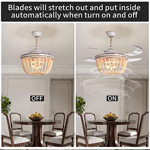 - GYING Wood Bead Ceiling Fan with Lights, Boho Chandelier, Reverse Retractable Blades, 42 inch 6-Gear Speed, Remote Control, Timing Function, For Kitchen, Living room, Bedroom (Bulb Not Included)
