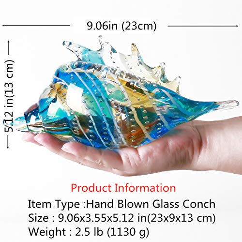 JIACI Coloured Glass Conch, Hand Blown Seashell Art Glass Figurine, Beautiful Home Decor, Crystal Glass Paperweight (B)