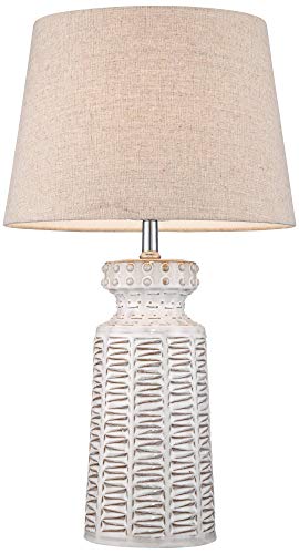 - 【Pre-Assembled Shades】Rustic white glaze finish ceramic base. Ceramic lamp construction. Linen fabric bell shades on top. 8-foot long clear-silver cords. May ship in multiple boxes and arrive at separate times.