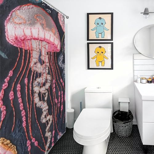 - 【Easy to Install 】 This Vintage Jellyfish shower shower curtain has a sturdy plastic inner ring and hooks, plastic grommets can be easily installed, easy to use.