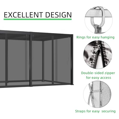 - 【Easy to Install】We provide plastic snap rings for easy hanging. Insert the rings into the netting loops and hang them over the gazebo or pergola frame. Then tie the netting's straps to the posts.