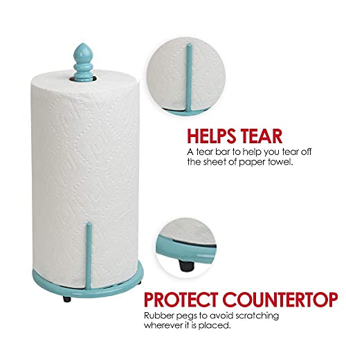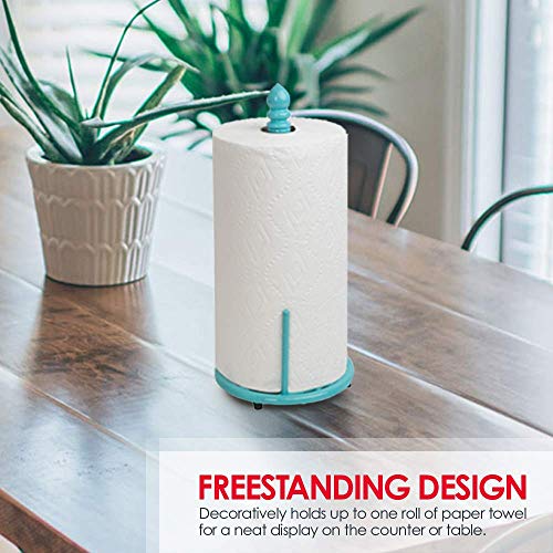 - HAS AN INTRICATE LATTICE DESIGN: The base of this cast iron paper towel holder has a lattice design that is eye-catching while bringing a unique yet homey touch. The turquoise color of this home basics paper towel holder adds a bold pop