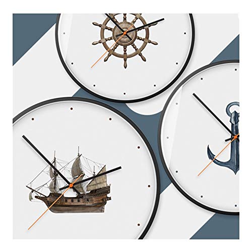 YANG1MN.Clock Anchor Helmsman Sailor Pirate Ship Acrylic Mirror Wall Clock Personality 3D Wall Wall Clock Cross-Border Mediterranean Style