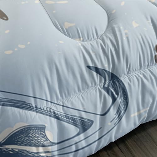 HOSIMA Anchor Nautical Bedding Kids Comforter Set Twin Size,Compass Whale Sailing Shell Print Bed Sets for Girls Boys Room Decor,Grey Comforter Twin Bedding Set with 2 Pillowcases.