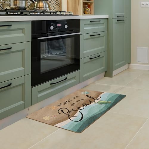 huester Beach Door Mat, Ocean Coastal Beachy Welcome Mat, Coastal Meet Me at The Beach Decorative Home Indoor Outdoor Porch Front Door Entrance Outside Welcome Doormat, 17×30 Inch