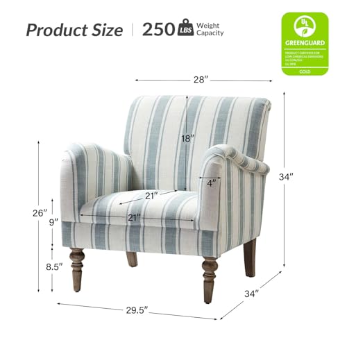 HULALA HOME Modern Accent Chair with Arms and Wooden Legs, Comfy Upholstered Armchair for Living Room, Bedroom (Stripe Pattern, Blue)