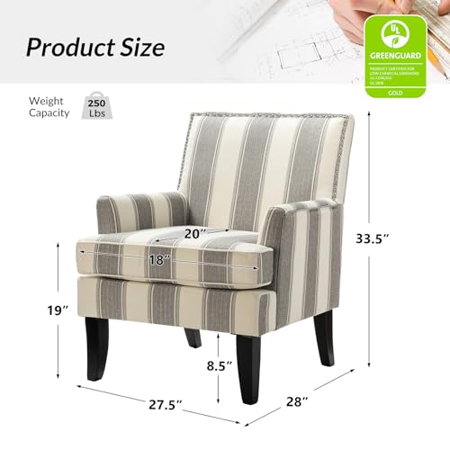 HULALA HOME Modern Accent Chair with Arms and Wooden Legs, Mid Century Accent Chair Armchair High Back Rest, Padded Armrest and Comfortable Cushioned Seat for Living Room (Stripe Grey)