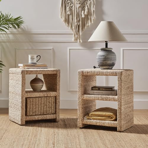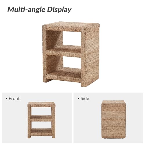 HULALA HOME Rattan Nightstand with Two Open Shelves, Seagrass Side Table Coastal Style, End Tables Natural
