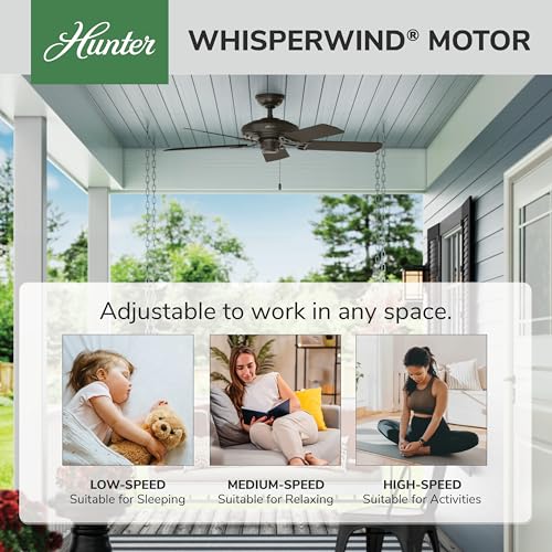 Hunter 52 inch Outdoor or Indoor Ceiling Fan No Light – Bronze Ceiling Fan without Light, For Patio, Porch, Garage, or Living Room, Standard Mount, 5 Blades, Pull Chain – Sea Air 53061, New Bronze
