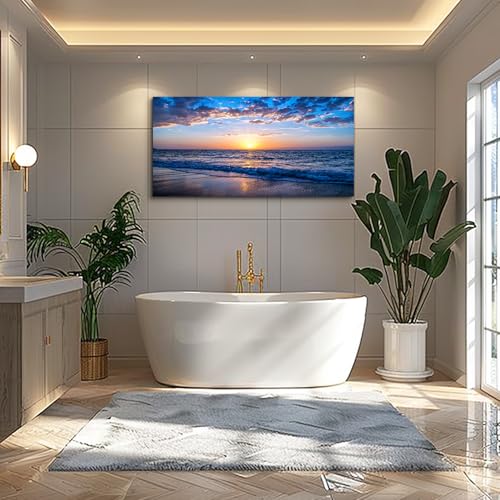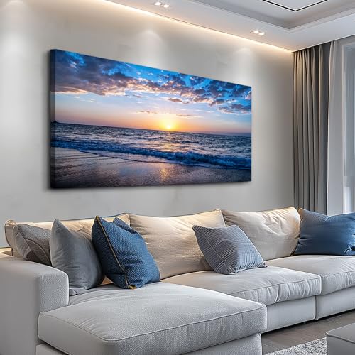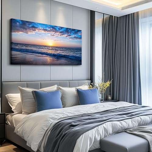 hyidecorart Wall Art Moon Sea blue Ocean Landscape Paintings Bedroom Canvas Art Print wall art for living room Paintings for Wall Decor and Home Decor (20 x 40inch x 1pcs)