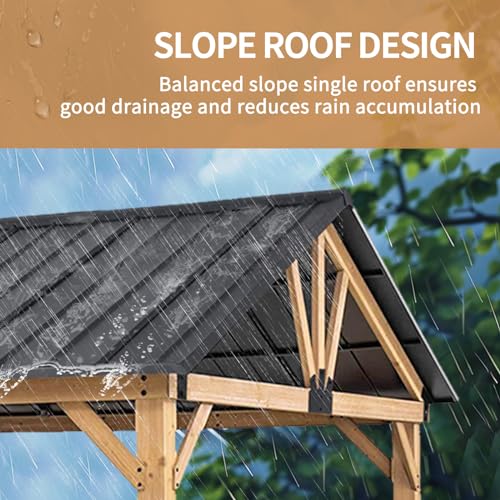 - UPDATED CEDAR WOOD FRAME: Constructed with a robust cedar wood structure, this gazebo is designed to resist decay, rust, and corrosion, ensuring enduring durability and aesthetic charm. Regular upkeep is essential to maintain the natural beauty and longevity of your wood pavilion, such as applying a water-based exterior wood sealant or exterior paint.