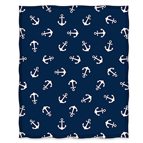 Jekeno Nautical Anchor Blanket Gifts for Men Women Kids Boys Birthday Christmas for Dad Husband Son Fathers Day Presents Sea Adventure Ocean Theme Navy Throw Blankets Dark Blue 50"x60"