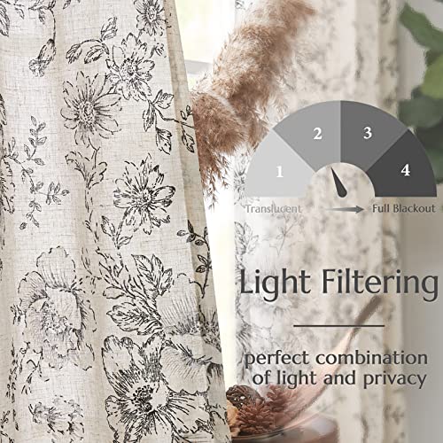 jinchan Linen Blend Curtain Floral Curtains for Living Room 84 Inch Length Black Printed Curtain Rod Pocket Back Tab Farmhouse Peony Flower Patterned Drapes Bedroom Window Curtains Set 2 Panels