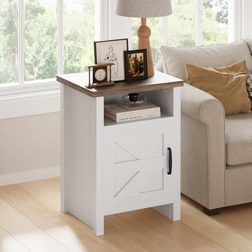 JUMMICO Farmhouse Nightstand, Modern Bedside Table with Barn Door and Shelf, Rustic End Table Side Table for Bedroom, Living Room (2, White)
